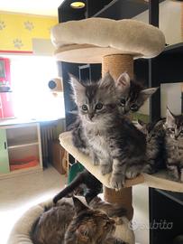 Cucciole desiderose di raggiungere la loro nuova famiglia per portare gioia e allegria ai loro nuovi umani... abituate a vivere in casa con altri gatti e non disdegnano la compagnia di cani, usano lettiera e tiragraffi. Vengono ceduti con sverminazione, vaccino, test feci e libretto sanitario, genitori visibili di ottimo carattere tipico della razza testati per principali malattie genetiche e virali, papà con pedigree ai cuccioli non è stato fatto... Gradito contatto telefonico o whatsapp 3402299016 NON SONO IN REGALO