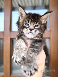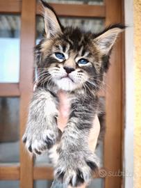 Disponibile splendida cucciola Maine Coon black ticked tabby, nata il 22 gennaio, pronta a raggiungere la nuova famiglia da fine aprile.