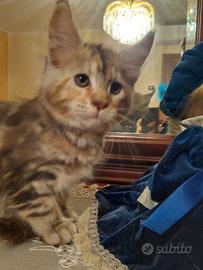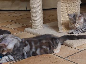 Allevamento amatoriale, con affisso ANFI , propone Maine Coon maschi e femmine con vaccini trivalenti, ciclo di sverminazione , microchip e certificato genealogico. Nati e cresciuti in ambiente familiare, carettere dolce e tranquillo, abituati a lettiera e tiragraffi. Si cedono con contratto da compagnia, obbligo di sterilizzazione entro l'anno. No perditempo.
