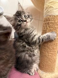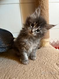 Disponibili alla prenotazione 4 femmine el cucciole di Maine coon nate il 24 febbraio e pronte al compimento dei 2 mesi , saranno completamente svezzate, sverminate, abituate all'uso di lettiera e tiragraffi e straordinariamente socializzate . Genitori di mia proprietà esenti malattie ereditarie , sani e visibili in foto ed in loco . Girerò foto e video sull'evoluzione della cucciola fino al giorno del ritiro . Cedo esclusivamente a persone serie ad euro 650, per altre foto ed informazioni contattatemi whatsapp al 3478033284 con una piccola presentazione . No perditempo grazie .