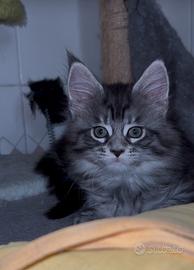 Disponibili alla prenotazione 2 cucciole di Maine coon ,una black silver e l'altra blu tabby ,nate il 24 febbraio e pronte a fine aprile , Saranno completamente svezzate, sverminate, abituate all'uso di lettiera e tiragraffi e straordinariamente socializzate . Genitori di mia proprietà esenti malattie ereditarie , sani e visibili in foto ed in loco . Girerò foto e video sull'evoluzione della cucciola fino al giorno del ritiro . Cedo esclusivamente a persone serie ad euro 650, per altre foto ed informazioni contattatemi whatsapp al 3478033284 con una piccola presentazione . No perditempo grazie .