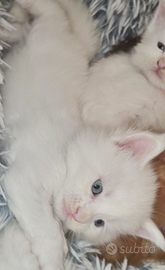 LA CUCCIOLA E NATA IL 21/12/2025 DISPONIBILE 1 FEMMINA TOTAL WHITE ENTRAMBI I GENITORI SONO DI MIA PROPRIETÀ A ENTRAMBI SONO STATI ESEGUITI I PRINCIPALI TEST FIV-FELV E GIARDIA TUTTI NEGATIVI LA MICINA VERRÀ CEDUTA A RECUPERO SPESE CON DOPPIA SVERMINAZIONE (NEMEX) PRIMO VACCINO E CON LIBRETTO SANITARIO SARÀ ABITUATA AL TIRAGRAFFI E ALLA LETTIERA CHIUSA SARÀ DISPONIBILE DOPO IL 7 MARZO SONO VISIBILI SIA LA CUCCIOLA CHE I GENITORI SU APPUNTAMENTO IL RECUPERO SPESE RICHIESTO E DI €450 SOLO VERAMENTE INTERESSATI NO PERDITEMPO