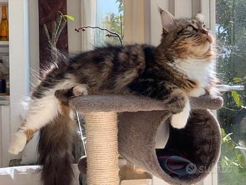 Vendo splendido e dolcissimo gatto Maine Coon femmina; 8 anni di eta ; il gatto verra' ceduto con pedigree, libretto sanitario con vaccinazioni eseguite; sterilizzazione; chi fosse seriamente intetessato mi contatti; astenersi perditempo