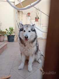 Disponibile per monta bellissimo esemplare maschio di malamute di 7 anni con pedigree e certificato displasia. Accordi in privato 3395020930.