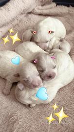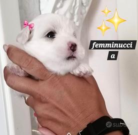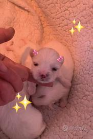 Bellissima cucciolata di maltesini coreani muso corto piccolissimi attualmente 18 giorni ..saranno cedibili dal 15 16 maggio in poi a due mesi compiuti .Si cederanno con libretto sanitario sverminazione prima vaccinazione microchip iscrizione anagrafe canina. Per adesso sono prenotabili impegnati un maschio e una femmina rimangono 2 femmine e un maschio liberi .Genitori papà coreano peso 2.200kili mamma 2.600kili possibilità di vederli sul posto in prov di napoli oppure video wozzapp per chi fosse lontano. Anche con trasporto autorizzati ASL in tutta italia per inf 339 433 5887 anche wozzapp