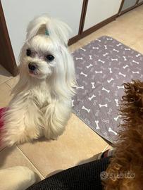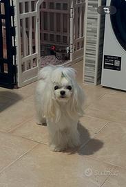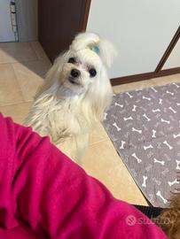 Cedo maltese femmina linea coreana di 15 mesi circa . Pesa 1700 grammi . È molto piccolina . La cediamo per compagnia. Non è adatta alla riproduzione perché è prognata . Per info chiamate al 3385068409