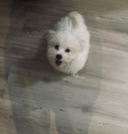 salve .Vendo questo bellissimo cucciolo di maltese di 70 giorni maschio bianco puro,cucciolo sano e forte corre e sempre di buon umore . Padre e madre visibile il padre ha fatto gare di bellezza a titolo amatoriale sempre 1 posto posso mandare foto dei genitori ,fatto 1 vaccino libretto sanitario e sverminato , in dotazione viene dato mangiatoia in acciaio e per l'acqua più la cuccia in lana costata 30 euro. Cucciolo da veri amatori . Bellissimo cucciolo. si vende a 500 euro compreso di oggetti elencati.No pedigree