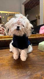 Maltese taglia molto piccola non adatto a riproduzione con pedigree e vaccini linea coreana che prevale 1500 g adulta, 8 mesi adesso ha il pelo tagliato ma nella foto con il pelo lungo é sempre lei