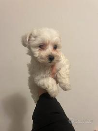 Disponibile ultima femminuccia di maltese toy di due mesi e mezzo. Nata e cresciuta in casa, abituata alla traversina e al contatto con le persone. Verrà ceduta con primo vaccino e ciclo completo di sverminazione. Per ulteriore informazione non esitate a chiamare