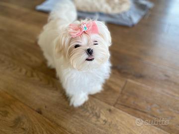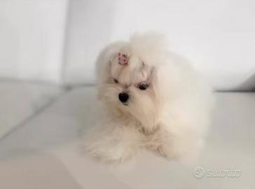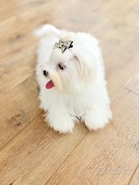 Cuccioli di 90 giorni completamente vaccinati e microchip da Allevamento Professionale Maltesi della Principessa con sede legale in Massa Martana che opera in tutta Italia con servizio da parte del titolare di consegna a domicilio isole comprese senza, specializzato nella selezione di soggetti anche per la Pet - Terapy dispone di cuccioli di altissima genealogia Coreana ed Americana. I cuccioli vengono consegnati completamente vaccinati, iscritti al libro genealogico Enci (pedigree) e muniti di garanzia veterinaria come da normativa europea. Taglia molto piccola con addestramento di base ed utilizzo della traversina.