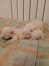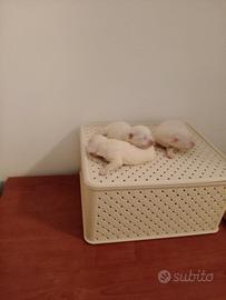 Cucccioli di razza maltese si possono vedere e prenotare li cedo al termine dello svezzamento circa il 25maggio con il libretto sanitario vaccinazione sverminati microchip passaggio proprietà ora sono in allattamento per inf 3277028564 Li consegnerò addestrati a sporcare traversina