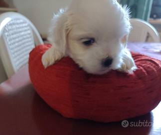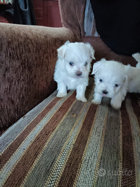 Stupendi cuccioli di maltese razza pura linea coreana nati il 20novembre da genitori entrambi visibili .mamma 2.5kg di peso papà pedigree enci 2.5kg .saranno disponibili con vaccino doppia sverminazione svezzati con libretto sanitario rilasciato dal veterinario dopo accurata visita cardiaca articolare e genitale. Abituati alla traversina igienica e alla compagnia di altri animali domestici. Microchip e certificato di buona salute .da non confondere con la linea europea che arriva a pesare 8kg .tutto visibile