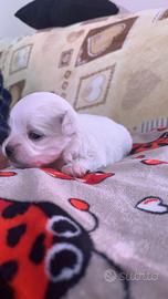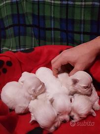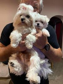 Disponibili dai primi di marzo meravigliosi cuccioli di Maltese toy, due maschi e tre femmine. I piccoli verranno consegnati ai due mesi con libretto sanitario, primo vaccino, ciclo vermifugo completo e microchip. Nell'ultima foto la mamma con un soggetto della cucciolata precedente. No ad affaristi e perditempo. N.B. NO PEDIGREE!!!