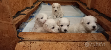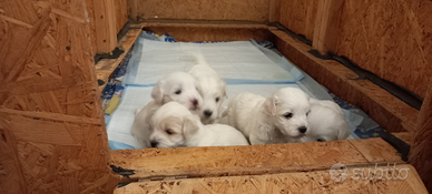 Vendo splendida cucciolata di maltesini 3 maschi e 2 femmine di quasi 2 mesi, saranno pronti per fine febbraio. Vengono venduti con libretto sanitario, sverminati, primo vaccino. Nati in casa il maltese è una razza ideale per grandi e piccini, non perde pelo.