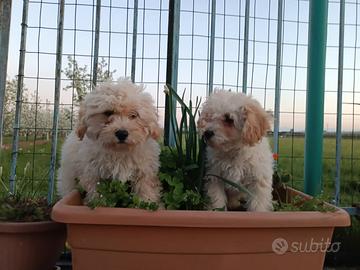 Cuccioli di maltipoo già pronti per riempire la tua vita di gioia ed allegria. Mamma maltese e papà barboncino di mia proprietà. Abituati con cani e gatti. Saranno consegnati con libretto sanitario microchip vaccini sverminati e visita medica. Anallergici molto obbediente . Hanno già compiuto 60 giorni . WhatsApp 340 3074603