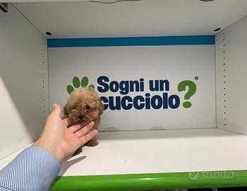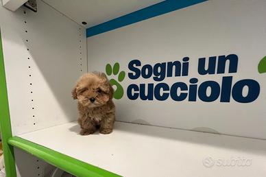 Dolcissimo e piccolissimo cucciolo di maltipoo Rosso , di oltre 2 mesi di età, abituato alla traversina, figlio di maltese piccolo e di barboncino mini toy.