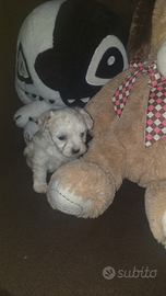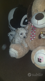 Meravigliosa cucciola di maltipoo la piccola e femmina ha 3 mesi viene ceduta con doppia vaccinazione, svermata e con microchip la cucciola e affettuosissima una gran giocherellona ama la compagnia ma allo stesso tempo e abituata a stare diverse ore a casa da sola ed e abituata a sporcare sulle traversine, ama giocare con i bambini e convive con altri piccoli animali domestici tipo il gatto.