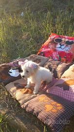 Stupenda cucciola di maltipoo la piccola e femmina ha 5 mesi viene ceduta con ciclo vaccinale completo, svermata e con microchip la cucciola è affettuosissima una gran giocherellona ama la compagnia ma allo stesso tempo è abituata a stare diverse ore a casa da sola ed è abituata a sporcare sulle traversine, ama giocare con I bambini e convive con altri piccoli animali domestici tipo il gatto. Sono visibili I genitori che pesano entrambi 2,5 chili per ulteriori informazioni non esitate a contattarmi