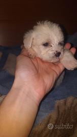 Stupendi cuccioli di maltipoo I piccoli sono un maschio e una femmina hanno 25 giorni vengono ceduti al compimento dei 60 giorni con primo vaccino, svermati e con microchip I piccoli sono già affettuosissimi amano stare in braccio ma verranno abituati a sporcare sulle traversine e a stare qualche ora a casa da soli sono nati e cresciuti in famiglia con tanto amore sono abituati ai bambini. Sono visibili I genitori che pesano entrambi 2,5 chili per ulteriori informazioni o prenotare i cuccioli non esitate a contattarmi