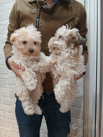 Maltipoo due femminucce di due mesi e una settimana di vita svezzate e sverminate si cedono con vaccino e libretto sanitario Abituate alla traversina Ultime foto genitori Si cedono ad amanti animali No affaristi Qualsiasi info .