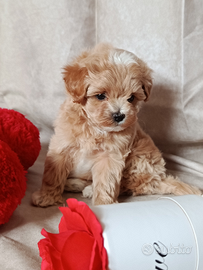 Dolcissimo maschietto maltipoo, di taglia molto molto piccolina. Questo piccolo è corretto(dentini perfetti e testicolini già in sede).