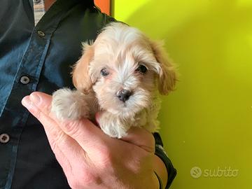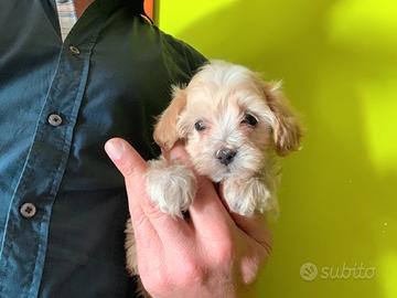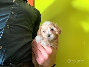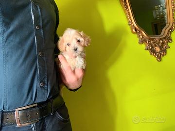 Dolcissimo e piccolissimo cucciolo di maltipoo albicocca, di oltre 2 mesi di età, abituato alla traversina, figlio di maltese piccolo e di barboncino mini toy.