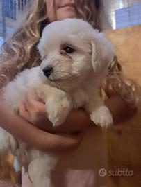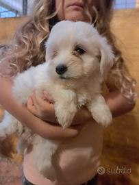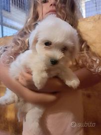 Adorabili pelosetti razza Maltipoo di taglia Toy, colore bianco candido come la neve, di 3 mesi, sono subito pronti per la consegna.