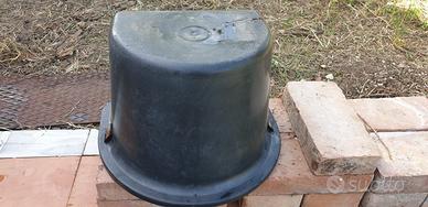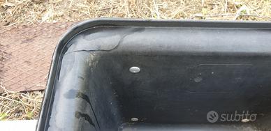 Mangiatoia con staffe, per cavalli, in buono stato, con una crepa su un angolo.