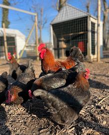 Disponibili galline e galli di marans, hanno 6 mesi e mezzo con ciclo vaccinale completo e prossime alla deposizione. Le uova sono di un colore bellissimo. Ceppo francese Per maggiori info o foto contattatemi. TELEFONO 351 519 3337