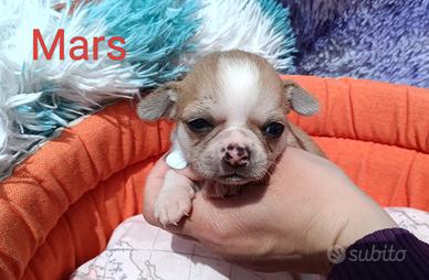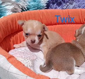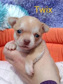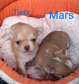 Due maschietti pelo corto chihuahua nati il due aprile pronti per inizio giugno. Ceduti con sverminazioni 1 vaccino microchip libretto sanitario pedigree Enci. Siamo a villa di Briano provincia di Caserta ma raggiungono tutta Italia