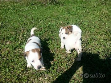 Simpaticissimi maschietti di Jack Russell, pelo liscio e zampa corta, di 80 giorni, sono pronti per essere accolti in una nuova casa dove porteranno tanta allegria.
