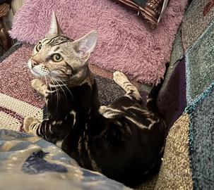 L'allevamento amatoriale propone un maschietto Bengala di colore Brown Marbled di 10 mesi, già è castrato, ha libretto sanitario con un ciclo di vaccinazioni, pedeegri da compagnia, è molto coccolone e affettuoso, abituato a lettiera e tiragraffi. Chiediamo solo un rimborso di spese