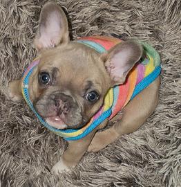 Cucciolo di bulldogue Feancese, due mesi, taglia piccola, tenerone, dolcezza infinita, e' in ottima salute, iter sanitario in corso data l'età!