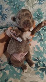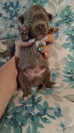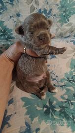Splendido maschietto chihuahua color Lilac occhi chiari, testa a mela, muso corto, macchia bianca sul petto. Nato e cresciuto in caso da genitori di mia proprietà. Microchip Vaccini Svermifugo Antiparassitari