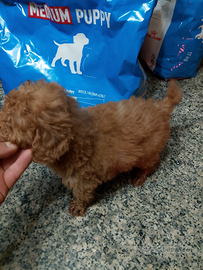 Maschietto toy Red con il primo vaccino microchip e attestato di buona salute mamma e papà visibile e iscrizione al anagrafe canile iscritto