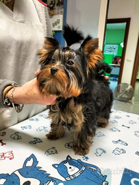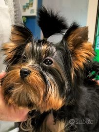 Ultimo cucciolo maschietto yorksheire terrier taglia piccolissima, 3 mesi completamente svezzato, nato e cresciuto in casa insieme ai genitori entrambi visibili e muniti di importante pedegree.