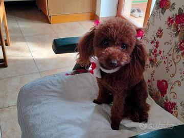 Disponibile per accoppiamento maschio adulto di due anni di barboncino Toy, colore rosso intenso ( l' ultima foto è lui da cucciolo all' età di quattro mesi).