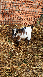 Vendo bellissimo maschii di capretto nano di 50 gg appena svezzato....colorazione molto bello....vendo opp accetto cambio con una femmina di capra nana....x info chiamare dopo le 17.30 grazie...