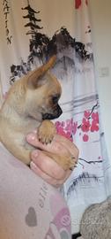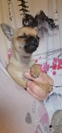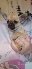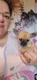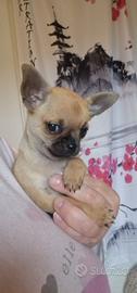 Chihuhua maschio nato il 18 febbraio e disponibile il 18 aprile color marrone con sfumature grigie,musetto nero figlio di campione di bellezza con pedigree,verranno ceduti sverminati con kit per i primi giorni. Il cucciolo è nato in casa con tanto amore no di allevamento, usa la traversina ma se avete il giardino sa già usare la gattaiola per uscire a fare i bisogni, entra da solo nel trasportino o in una borsa da passeggio, molto intelligenti e basta nulla ad insegnargli le cose. Qualsiasi info sono a disposizione
