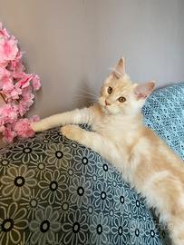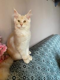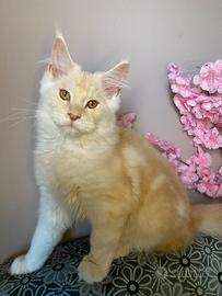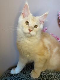 Bellissimo cucciolo di Maine coon, 4 mesi, sverminato, vaccinato, con libretto sanitario e pedigree da compania. Test di malatie genetici di genitori, negativi, ecocardio a norma. pronto di andare a casa nuova subito.