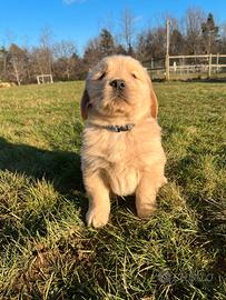 Maschio disponibile collare Blu. Cucciolata nata a Capodanno, cuccioli disponibili nella prima metà di Marzo. Meravigliosi cuccioli di Golden Retriever Linea Americana 100% disponibili alla prenotazione solo maschi, le femmine sono già state prenotate. Consegna effettuata personalmente, in tutta Italia ed all'estero. Verranno ceduti dopo i 60/70 giorni sverminati, con microchip, libretto sanitario con prima vaccinazione e pedigree, cuccioli da "compagnia" (no per allevamento e riproduzione). I genitori hanno i certificati per tutti i test genetici per escludere malattie ereditarie, esenzione displasia anche e gomiti ufficiale celemasche, visita cardiologica ed oculistica. Allevamento iscritto all'albo ENCI con affisso "del sentiero delle tracce" con sede presso Azienda agricola La casa dei daini Venegono Inferiore Varese Per informazioni Ferruccio Allevatore e addestratore iscritto all'albo ENCI