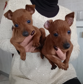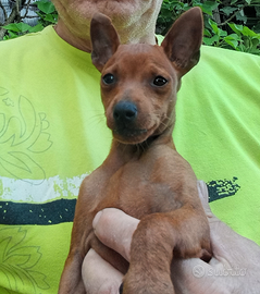 All.amatoriale vende maschio Pinscher nato il 23 ottobre rosso cervo mogano, sverminato e con due vaccini su richiesta invio foto del soggetto e dei genitori..