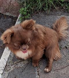 Maschio pelo lungo definito simil chihuahua perche' non ha pedegree , di 20 mesi ottimo carattere sia come stalloncino o da' compagnia , a 450 euro .
