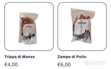 4. **Senza allergeni**: Ideali per cani con intolleranze o sensibilità alimentari. 100% Naturali senza additivi e conservanti.