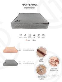 Morbido materasso, sfoderabile e lavabile a 30° con proprietà ortopediche. Tessuto di alta qualità, antigraffio e traspirante. Disponibile in 2 colori e 2 dimensioni. M - 90 x 75 x 15 cm (€44,99) L - 110 x 90 x 15 cm (€54,99)