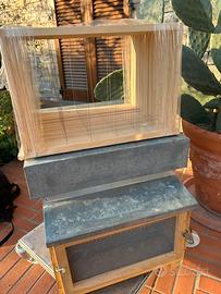 Vendo arnia in ottimo stato con un set di 14 telaini nuovi, montati senza foglio cera. l'arnia con fondo staccabile ha una rete nuova ed è completa di nutritore apiscampo, alcuni accessori in metallo come separatori interni, rete aggiuntiva fondo, angolari per una manutenzione successiva. L'arnia è totalmente sana