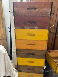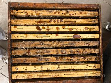 Vendo per cessata attivita' 5 ed ultimi melari. I melari sono completi di figli cera costruiti. Questo permette alle api di non perdere tempo nella fase si raccolta . I melari sono sani , potrebbero alcuni necessitare di una levigata leggera e rinnovo dell'impregnante protettivo . Il prezzo indicato è cad uno