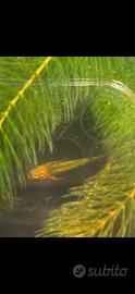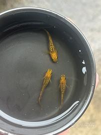 Cedo Medaka reckless a pinne lunghe Colore giallo/oro con squame metallizzate e pinne lunghe. Resistono al gelo, mangiano le larve di zanzare e quindi sono perfetti per i minipond.