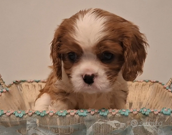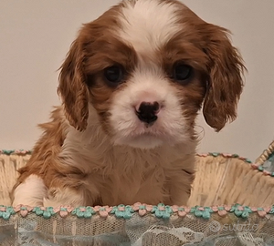 Disponibili 2 cucciole di Cavalier king charles spaniel mantello blenheim con pedigree enci. Le cucciole possono andare nella futura casa da metà febbraio e saranno provviste di microchip, vaccino, doppia sverminazione, libretto sanitario, certificato veterinario di buona salute, iscrizione ad anagrafe canina. I genitori sono visibili e di mia proprietà e testati per oculopatie, cardiopatie, lussazione della rotula e test genetici. Le cucciole sono visibili previo appuntamento contattando il numero 320 3157031