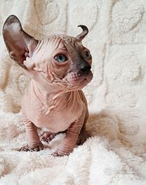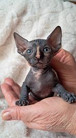 Disponibili una splendida gattina Sphynx femmina Blue Tortie Point e un maschio Sphynx Elf Blu Point. Cresciuti in casa con amore e presenza costante. Genitori di alta genealogia mamma: Sphynx Blue Point Elf papà: Sphynx crema/cannella FIV/FELV negativi Carattere eccezionale: affettuosi, dolci, equilibrati SARANNO CEDUTI CON: svezzamento completo libretto sanitario sverminazioni doppio vaccino abituata a lettiera e tiragraffi. Per ulteriori informazioni, foto e video, scrivetemi in privato. No perditempo